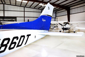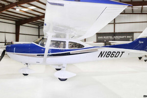 Matterhorn White with Khaki and Black Painted Stripes; Royal Blue Painted Tail and Cowling.