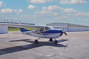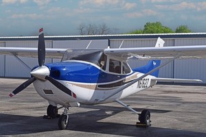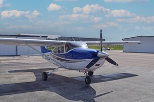 Matterhorn White with Tan and Black Painted Stripes; Royal Blue Painted Tail and Cowling