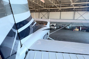 Matterhorn White with Arista Blue and Medium Silver Metallic Painted Stripes in Good Condition