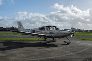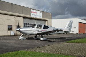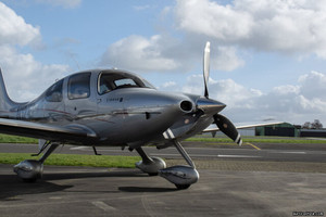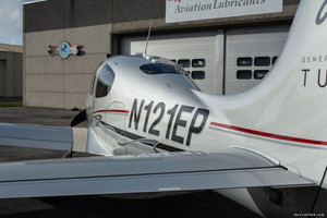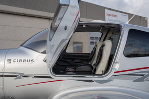 The exterior of this Cirrus SR22G3 Turbo Normalized remains as striking as the day it left the factory, featuring the timeless Sterling silver base design. The sleek fuselage is accented by a dynamic multi-tone stripe package in Grey, Black, Red, and Blue, creating a ramp presence that perfectly complements its highperformance capabilities.