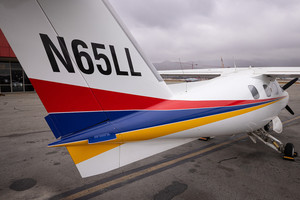 White w/ Blue, Red & Yellow Striping, Red Tips Propeller