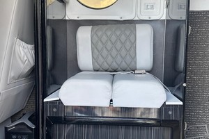➢ Cool gray monotone elite leather seating, forward side-facing 2-place divan, 4-place club with Dual stowable executive tables
