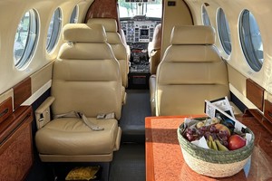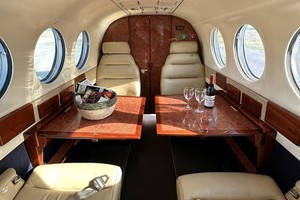 Beige seats in beautiful condition with a forward two place divan.