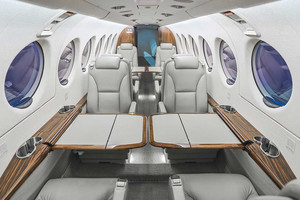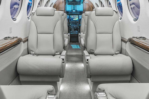 N778JA features a nine passenger cabin arranged via a double club configuration and belted lavatory seat. The forward left hand refreshment center includes an insulated carafe, ice container, trash container and chilled wine bottle storage.