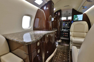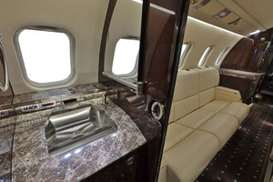 | Executive 8 Passenger Configuration Consisting of Forward Flight Deck Pocket Doors, Left-Hand Forward Cabinet, Right-Hand Forward Cabinet, Right-Hand 2-Place Executive Chairs, Opposite Galley Cabinet With WAVEJET Microwave, Aft Right 2-Place Executive Chairs, Opposite 3-Place Divan, Aft Belted Private Lavatory, Gogo ATG-5000 Wi-Fi, Airshow 4000 CD/DVD Player, Fwd and Aft Video Monitors, and 110-Volt and USB/C Outlets. |