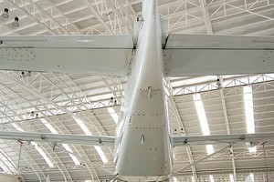 - Overall White with Grey, Blue and Black Stripes Across the Fuselage
