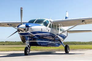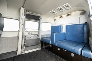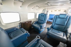 Eight passenger executive interior with center club seating, right hand refreshment center, left hand storage center, cockpit center console, flushing aft potty, ASIC pilot and co-pilot door storage. The executive interior was installed by Capital Aviation in 2021.
