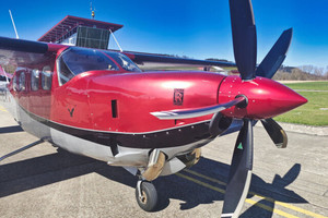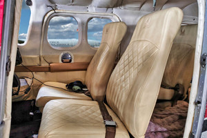 The interior of the aircraft is in excellent condition, with beige leather seats that are like new. The cabin is equipped with a pressurized system that maintains a comfortable cabin altitude up to FL230. The aircraft has been designed to accommodate six passengers comfortably, with ample legroom and headroom.