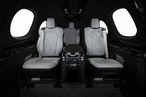 # of Seats: 7. Special Edition Arrivée interior with executive seating and center console included. Two-tone albatross and obsidian premium leather seats with White Arrivée accents stitching. Obsidian Black and Charcoal interior, anthracite Alcantara headliner with carbon fiber accents and granite premium carpet. Cross country seats included. |