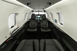 accommodation with multiple installation configuration. Interior colors consist of black lower side panels and carpet, white sand upper side
