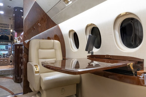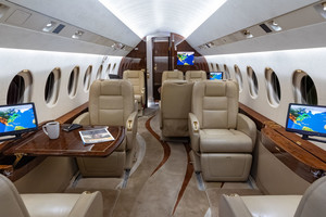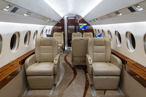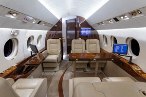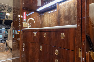 | This elegantly appointed ten (10) passenger floor plan features two distinct passenger cabin areas with a Forward galley and closet, and FWD and AFT lavatories. Jump seat certified for crew only. Galley equipped with espresso maker, microwave, and electric oven. |