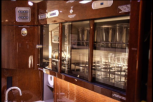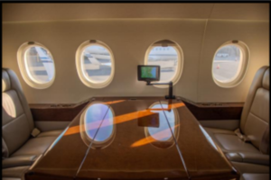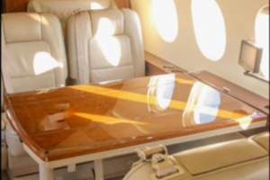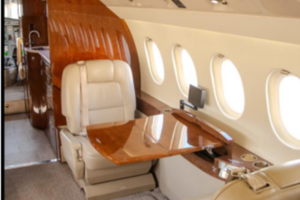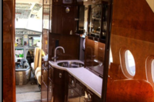 | Elegant ten (10) passenger fireblocked interior featuring a forward third crew side facing seat followed by a four (4) place club; an aft four (4) place dining group opposite a two (2) place club. All seating is done in beige colored leather; headliner and PSU panels are completed in neutral Ultra Suede with contrasting lower sidewalls in brown textured fabric; the window reveals are completed in white textured fabric. The cabinetry found throughout the cabin is Birds Eye Maple complemented by nickel colored metal plating and luxurious wool loop carpeting. Aft full-service lavatory. Additional amenities include Dual Aircell ST-3100 Iridium w/three (3) Handsets, Aircell ATG 5000 High Speed Data, and a forward full-service galley. Laminate in galley and lav. New sidewalls and carpet. Woodwork was touched up and polished. Equipment in the galley includes espresso maker, microwave, high-temperature oven. Cabin amenities include dual DVD player, CD player, eight side ledge plug-in monitors, forward 15â LCD bulkhead monitor, and Airshow/Jetmap.  |