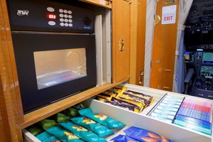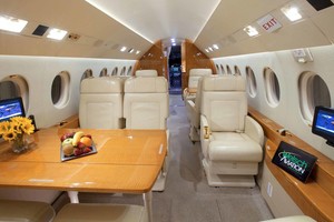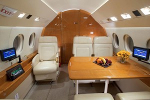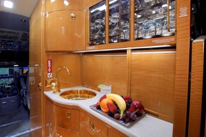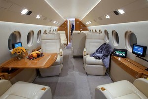 | 10 Passenger Interior Plus Side Facing Third Crew Member Seat, Forward Crew LAV and AFT Passenger LAV, Forward Galley Area Highlighted with; TIA Microwave, Backlit Crystal, Enflite Convection Oven, Large Storage Tray Racks, Coffee, Ice Drawers, China Storage, Corian Counter Top, Dual Muli-region DVD Players, Airshow 500, Ovation CMS Flat Screen Control Panel, FWD Four Place Club, Aft Four Place Conference Group and Two Place Club, (8) Rosen 8.4â LCD Plug-in Screens, Manual Accordia Window Reveals, All Seating Completed in Bone Leather, Honey Woodwork, Lumbar Support Cabin Seats and Leg Rests on Club Seats. |