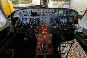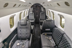 | New 2023 Elite Aircraft Interiors Complete cabin refurbishment completed in 2023, including soft goods, all new woodwork and metal plating. Passenger seating for 7 includes: a forward, 2-place divan across from a single VIP Seat; a rear, 4-place club. Forward refreshment center allows for beverage storage and includes a warming oven. The rear lavatory includes a sink and storage.  |