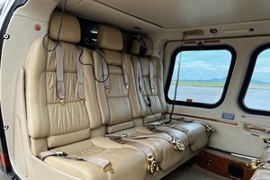 Partial refurbishments - seats and carpet - August 2019 Six passenger ( two crew) VIP configuration with forward and aft 3 place divans in Caffelate (Beige) leather. (Centre forward seat folds down as a table and cup holder.) Cream patterned carpet with complimentary side panels, headliner and high gloss, wood veneer kick panels.