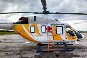 transportation of one injured patient with 2 medical attendants and rendering first aid on board the helicopter