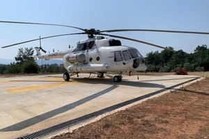 A spillway device for a helicopter is a special container that is transported on an external suspension. It is used to extinguish fires and deliver water to special tanks. Helicopter weirs are loaded from open natural and artificial reservoirs with a minimum depth of 1-3 m. Filling speed — up to 20 seconds.