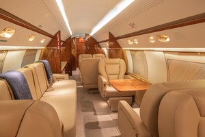 The mid cabin of the aircraft has a three (3) place belted divan opposite two (2) club seats. The mid cabin divan was recovered with leather in 2024.