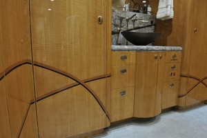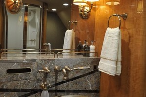 • The fully equipped aft lavatory is equipped with vanity, toilet and shower