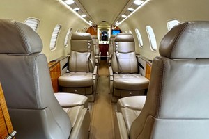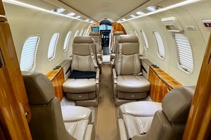 Executive nine place interior configured in a double club arrangement.