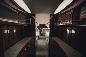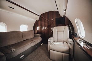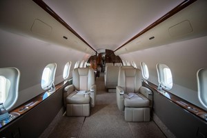Thirteen (13) passenger cabin features 4-place club, followed by a 4-place conference group across from a credenza. In the aft cabin there is a 3-place berthable divan opposite a 2-place club. The forward galley is equipped with a High Temp and Microwave Oven, Food Chiller, Coffee Maker, and Espresso Machine. There are both forward and aft lavatories.