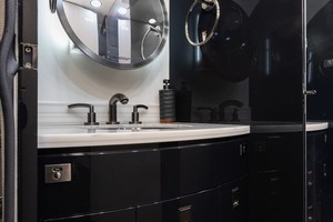The aft LH cabin features a four (4) place conference group with table opposite a four (4) place divan on RH side