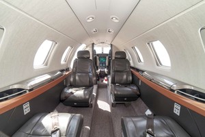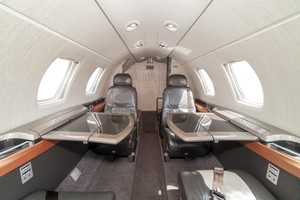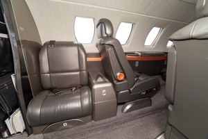 • Birch Interior Scheme. Six (6) Passenger Leather Seating including Forward Side Facing Seat and Belted Lavatory, Left Hand Forward Storage Cabinets, and Dual Executive Writing Tables
