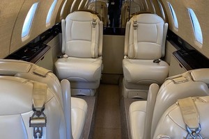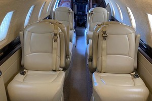 • Seating: Cream leather seats arranged in a double-club configuration plus a forward side-facing seat