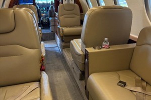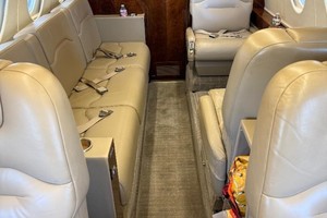 9 Executive Seats, 4 Fwd Club Seats, Aft 3 place couch, 2 Seats opposite couch in light Beige Leather. Aft Vanity with flush toilet