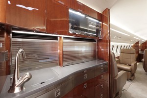 14 Pax floor plan w/ 3rd Crew Seat, Fwd and Aft Lavatories, Galley pocket door, 2 Eletrical Divans, Aft Cabin divider w/Electric Roller curtain