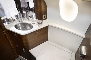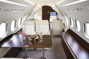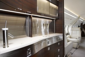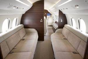 12 Pax (14 seats) Floorplan w/3rd Crew Seat, Fwd and Aft Lavatories, Galley pocket door, Aft Cabin divider w/ stowable curtain, Aft Divans w/electrical berthing.