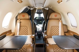 Four-place club seating with retractable armrests and dual stowable executive tables