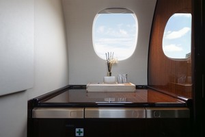 This beautiful six (6) passenger interior features a spacious layout and forward refreshment center with large storage closet.