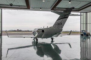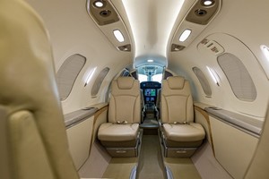 Cabin configuration Forward side-facing seat, Four-place club seating arrangement, aft externally servicable lavatory separated by sliding pocket door