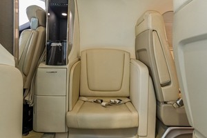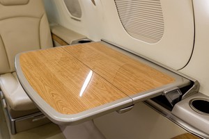 Notes Two stowable executive tables, LH front storage compartment, Personal storage compartments, Electric pleated shades, Lighted logo trim,