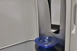 Belted Lav seat with distinctly designed Skylights within Lavatory
