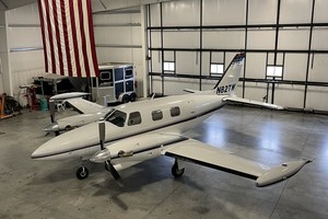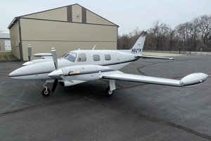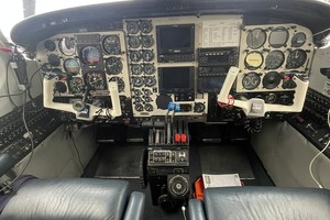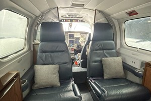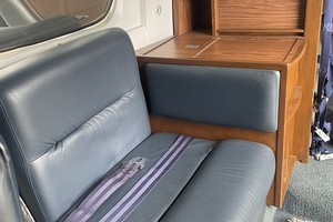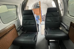 | The executive configured interior is Blue leather in good condition with refreshment center, tables, potty, dividers and curtains. |