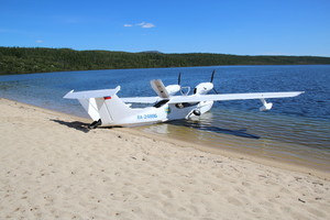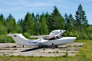Л-42М - четырехместный цельнокомпозитный самолет-амфибия с двумя двигателями Rotax 912ULS (2х100 л.с.) с трехлопастными винтами изменяемого шага Airmaster с электрическим приводом.