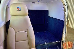Tan leather seats, pilot and co pilot sheepskin, Blue carpets, white hoodlining.