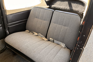 | Gray Fabric and Vinyl seats with matching side panels and carpet with mats. Cream headliner. Overall good condition. Rated 8 out of 10. |