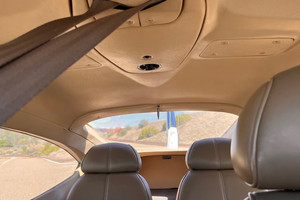 Tan leather seats with matching fabric and leather side panels. Tan carpet. Cream headliner. Overall rated 8 out of 10.
