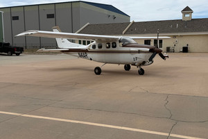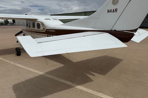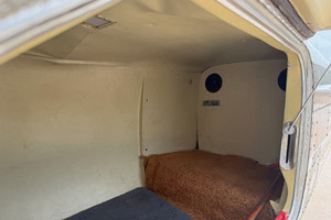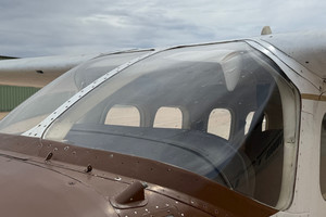 | White base with Two tone Brown stripes. Original with Light hail dings. Glass is all in good condition. |