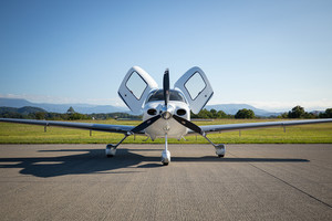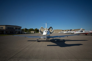 | Painted in 2012, this White and Silver pearl two-tone paint with Black and Silver Accent Stripes. Polished Grab handles, steps and spinner. No Vinyl decals or stripes on this Aircraft-all paint. |