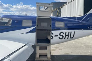 Pilot and Co-Pilot Control Yokes recovered in Black Leather with Red and Blue Stitch – Refurbished in 2023