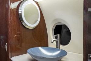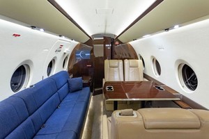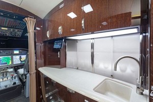 | Beautiful ten (10) passenger cabin featuring four-place club seat configuration with two fold out tables in the forward cabin. The aft cabin features four-place conference group opposite a two-place divan (recently refurbished). A cockpit jump seat, forward galley, and aft lavatory complete this interior. |