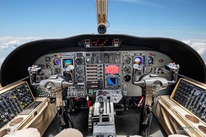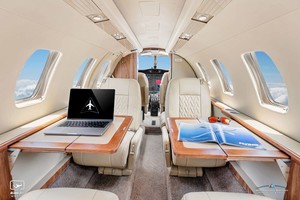 | New Executive 6 Passenger Seating and soft goods Completed June 2025 in Tan Leather with Hemisphere Sand Headliner, Fwd Left Side Deluxe Refreshment Center, Light Tan Veneer Woodwork, Forward Refreshment Center w/Mapco Coffee Pot, Aft Privacy Curtain, Executive Writing Table Flushing Aft Belted Lav. |