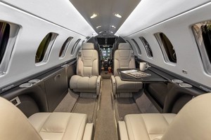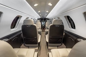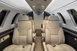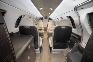 | A modern 6 1 passenger configuration featuring a forward galley, a four-place club, two forward facing seats in the aft cabin, and a belted lav. Connectivity options include ATG-5000 and Aircell ST-3100. |