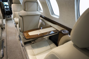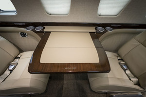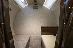 • Overall Bisque Interior Scheme with Qtr.Figured Mahogany High Gloss Wood Veneer Cabinetry and Brushed Aluminum Hardware