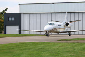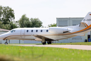 | 7 Cabin Seat Configuration, 4 Club Seats, 2 single fwd. Seats, 1 side facing Seat, Cabin and Cockpit AC Power Outlets (110V), Lavatory with Sink and sliding door for privacy, 2 additional foldable Pax Tables on seat 6 & 7, Satcom (Aircell AXXESS II), Airshow, Cabin Briefer, Hot Coffee Pot and Ice drawer. Seats in creme brown, carpet dark brown and crème white sidewalls. |