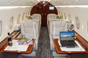 Ссылка на объявление| The cabin is configured for Nine (9) passengers. Entering the aircraft on the left hand side is a coat closed, directly across on the right hand side is the main galley. Main cabin is a four (4) place club followed by another four (4) place club seating arrangement that features fold out card tables. |